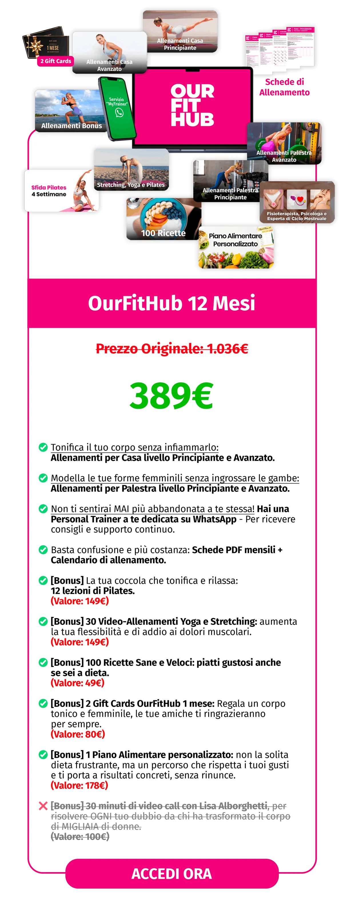 Una volta che acquisti Our Fit Hub avrai accesso sia agli allenamenti Casa che Palestra, deciderai tu dove allenarti a seconda del tempo che hai a disposizione e di dove ti senti più a tua agio.